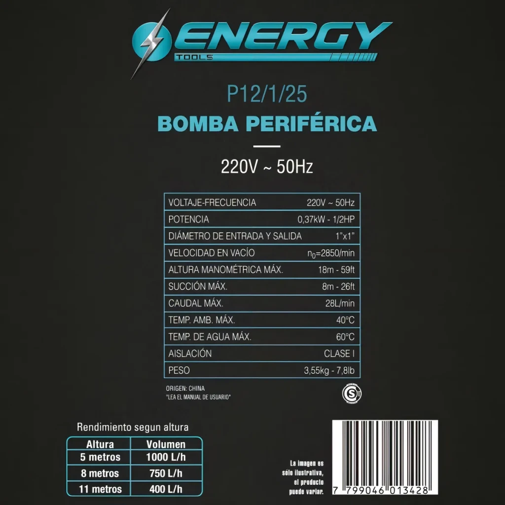 Bomba Periférica 1/2 Hp Energy P12/25 18m