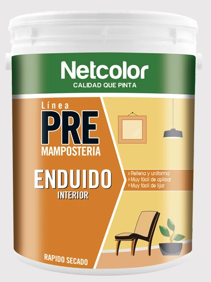 Enduido Interior NetColor PRE es un material en pasta plástico listo para usar, para emparejar y corregir imperfecciones en superficies interiores y mejorar el trabajo de terminación.