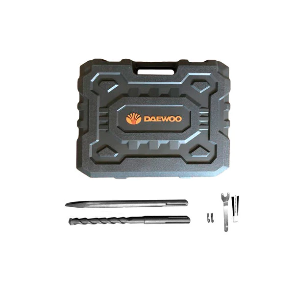 Accesorios: Mango auxiliar, Cincel de punta 18x320mm, broca 22×320 mm, Juego de carbones de repuesto y recipiente de grasa.
