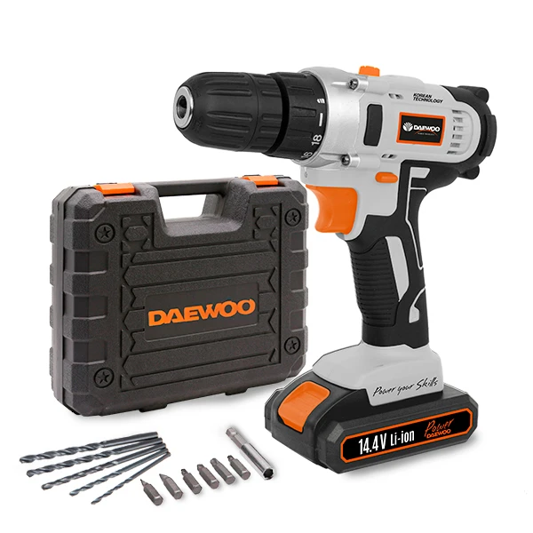 Nuestro taladro atornillador DACD1440, es una excelente opción, para quien busca una herramienta simple y práctica de usar ideal en las más diversas tareas. Provisto de un potente y confiable motor alimentado por una batería de litio de 14,4 v y 1,3 Ah. Incorpora la función PERCUTOR, ideal para perforar en mampostería. Velocidad variable y contramarcha, más dos velocidades mecánicas que nos brinda elasticidad en buscar el equilibrio entre fuerza de apriete (20 Nm) ajustable en 18 posiciones y velocidad (0-400 / 0-1500 RPM). Cabezal metálico. Cuenta con luz de trabajo, maletín organizador, set de accesorios, más baterías y cargador. Una herramienta ideal para trabajos en el hogar.