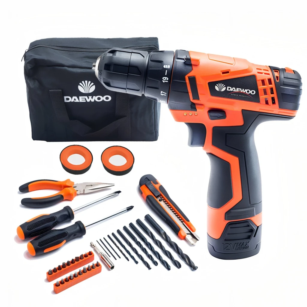 Nuestro taladro atornillador inalámbrico DACD1210CK es una excelente opción, para quien busca una herramienta simple y práctica de usar ideal para el armado de muebles y carpintería. Cuenta con un mandril autoajustable de 10 mm. Su batería extraíble de litio es de 12 v y 1,5 Ah, alimenta un poderoso y robusto motor que nos brinda una excelente performance de trabajo, con velocidad variable de 0-550 RPM y contramarcha. Su fuerza de apriete o torque es de 19 Nm, ajustable en 19 posiciones. Cuenta con luz led de trabajo, cargador, set de puntas y herramientas en un practico bolso para que contar con todo lo que necesitas al comenzar tu proyecto.