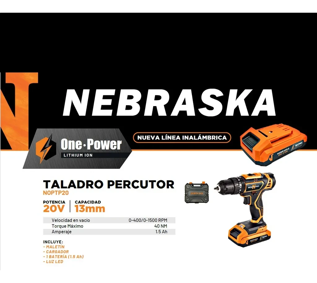 Taladro Percutor Atornillador Nebraska 60Nm Torque