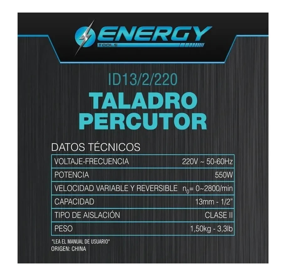 Taladro Percutor Eléctrico ENERGY 550w 13 mm Id13/2/220